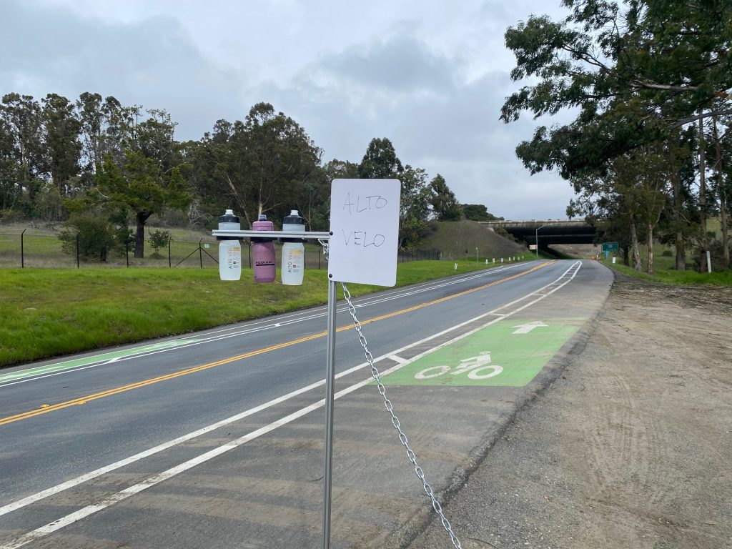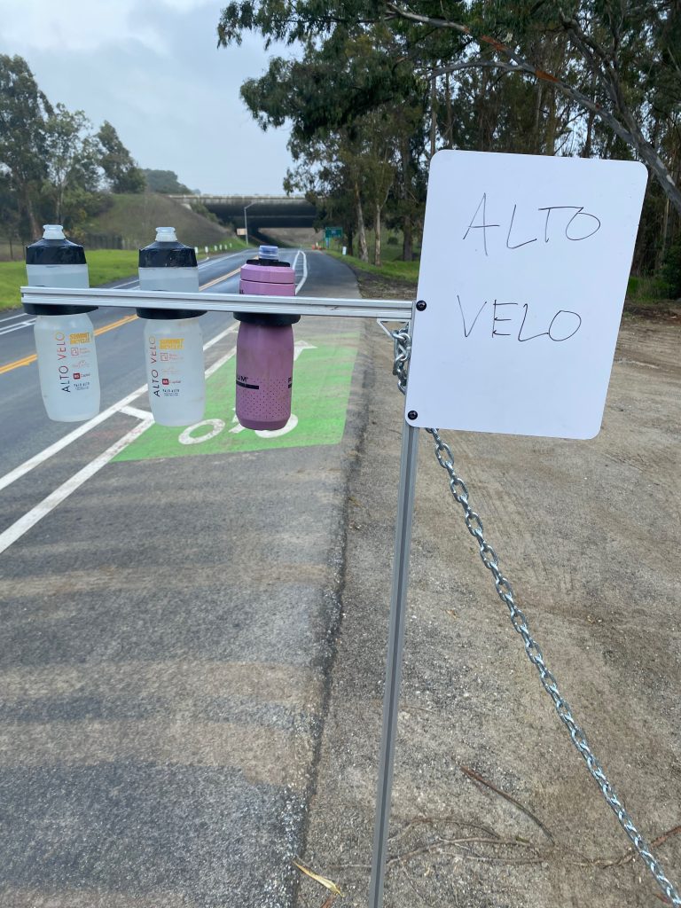 Markers at the top of the Bottle Grab will allow riders to pick out their stand and convey to other riders that the bottles are not for them. Dry erase signs at the top allow users to write their name or team name large enough to be seen from far away (as you can see in the end of the set up demo, dry erase doesn’t work well when it’s wet out, so mark the sign when it’s dry…maybe something to do with the “dry” in dry erase). Future iterations of the Bottle Grab will feature abilities to support a flag that can be seen from far away.