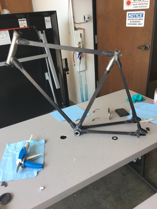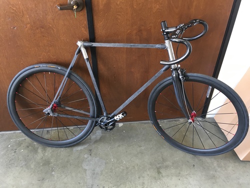 - The frame was designed to interface with standard bike parts, including the headset and fork, press fit bottom bracket, and fixed gear wheels. The picture of the bike does not include the seat post due to a lug brazing defect (seat post was blocked from sliding in).
