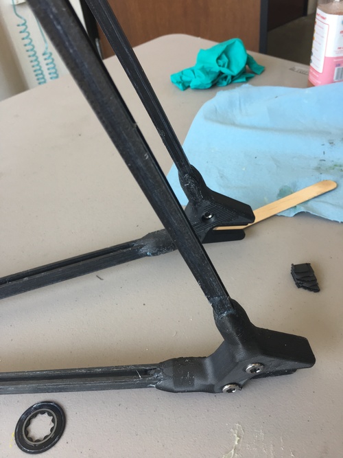 - The tubes are made from two rectangular cross-section 3D printed carbon fiber bars. These bars are fixed to the lugs with epoxy and have spacers epoxied at specific locations between the two bars to increase the moment of inertia. The bars are rectangular, long, and skinny due to the print capabilities for this specific carbon fiber printing material, which was used because it is the strongest material available for carbon fiber 3D printing.